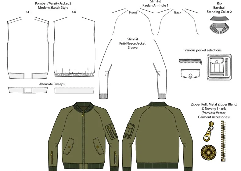 Tech pack templates, fabric sourcing list, flat & fashion sketch templates